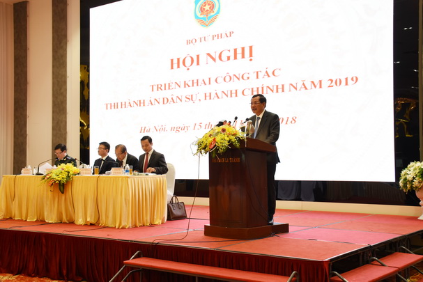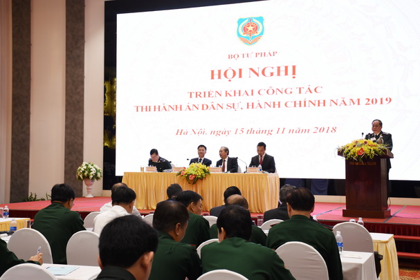 Sáng 15/11, Bộ Tư pháp đã tổ chức Hội nghị triển khai công tác thi hành án dân sự, hành chính năm 2019. Dự Hội nghị có Ủy viên Bộ Chính trị, Phó Thủ tướng thường trực Chính phủ Trương Hòa Bình, Bộ trưởng Bộ Tư pháp Lê Thành Long, Thứ trưởng Trần Tiến Dũng.