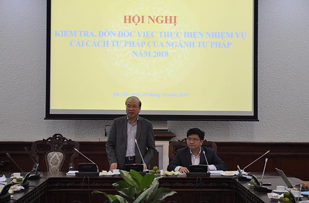Báo cáo kết quả thực hiện các nhiệm vụ trọng tâm công tác CCTP giai đoạn 2016-2018, đồng chí Nguyễn Văn Cương, Viện trưởng Viện Khoa học pháp lý cho biết, thực hiện Nghị quyết 49-NQ/TW của Bộ Chính trị ngày 02/6/2005 về Chiến lược cải cách tư pháp đến năm 2020, các Kết luận, Thông báo của Bộ Chính trị, Chương trình trọng tâm CCTP giai đoạn 2016-2021, Ban cán sự Đảng Bộ Tư pháp đã lãnh đạo, chỉ đạo các đơn vị chức năng thuộc Bộ và Sở Tư pháp, Thi hành án dân sự các tỉnh/thành phố trực thuộc Trung ương thực hiện nghiêm túc, đầy đủ những nhiệm vụ CCTP thuộc chức năng, nhiệm vụ của Ngành. Trong đó nổi bật là xây dựng và hoàn thiện thể chế về pháp luật hình sự, dân sự, thể chế liên quan đến tổ chức và hoạt động của Ngành. Công tác hoàn thiện thủ tục hành chính trong các lĩnh vực do Bộ quản lý cũng được đẩy mạnh. Năm 2017, chỉ số cải cách hành chính của Bộ Tư pháp tăng 03 bậc, xếp thứ 6/19 Bộ, ngành được đánh giá.