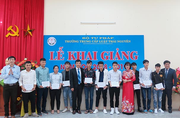 Sau đó, Thứ trưởng đã đánh trống khai giảng năm học mới 2018 – 2019 Trường Trung cấp Luật Thái Nguyên. Cũng trong buổi Lễ, Thứ trưởng cùng Hiệu trưởng, đại diện cụm thi đua số II Bộ Tư pháp đã trao học bổng cho các em học sinh nghèo vượt khó. Mỗi suất học bổng trị giá 1.000.000 đồng.