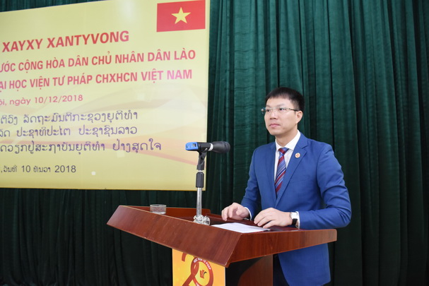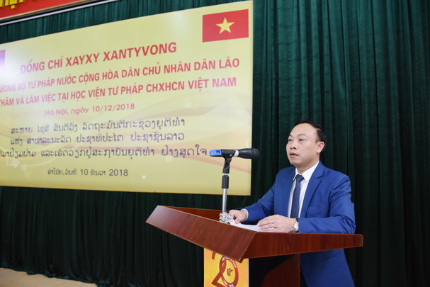 Sáng 10/12, Bộ trưởng Bộ Tư pháp nước CHDCND Lào Xay xỉ Xẳn tỵ vông, Thứ trưởng Bộ Tư pháp nước CHDCND Lào Sẩm Xuc Sim phạ vông và đoàn công tác của Bộ Tư pháp nước CHDCND Lào đã đến thăm và làm việc tại Học viện Tư pháp Việt Nam. Thứ trưởng Bộ Tư pháp Việt Nam Nguyễn Khánh Ngọc cùng đại diện Học viện Tư pháp và một số đơn vị thuộc Bộ cùng tiếp đoàn.
