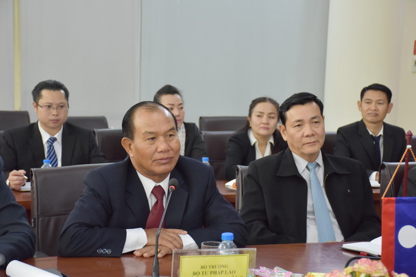 Chia sẻ những khó khăn, vướng mắc trong quá trình triển khai Dự án, Bộ trưởng đánh giá cao sự nỗ lực, cố gắng của cả hai phía trong việc thường xuyên phối hợp và triển khai tốt các nhiệm vụ đã đề ra. Bộ trưởng cũng thống nhất việc cần sớm ban hành 06 chương trình khung đào tạo, bồi dưỡng cho các chức danh tư pháp, cán bộ pháp luật và tư pháp của Lào và đưa vào triển khai trên thực tế.