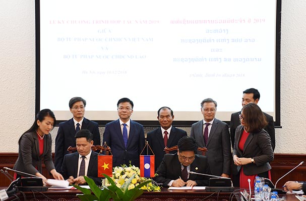 Ngay sau Hội đàm đã diễn ra Lễ ký kết Chương trình hợp tác năm 2019 giữa Bộ Tư pháp hai nước do đồng chí Nguyễn Hữu Huyên - Quyền Vụ trưởng Vụ Hợp tác quốc tế, Bộ Tư pháp Việt Nam và đồng chí Sommay Sy Uudomphanh, Phó Vụ trưởng Vụ Hợp tác quốc tế, Bộ Tư pháp Lào thực hiện. Theo đó, hai bên sẽ tiến hành hợp tác pháp luật và tư pháp trong các lĩnh vực: Trao đổi kinh nghiệm về cải cách tư pháp và pháp luật; xây dựng và thi hành pháp luật; phổ biến, giáo dục pháp luật; thi hành án dân sự; hành chính tư pháp; bổ trợ tư pháp; Nâng cao trình độ, năng lực cho cán bộ thuộc các cơ quan, đơn vị và cơ sở đào tạo pháp luật và tư pháp của các bên, đẩy mạnh đào tạo pháp luật và nghiệp vụ tư pháp; khuyến khích việc ứng dụng công nghệ thông tin trong công tác pháp luật và tư pháp; tăng cường năng lực thực hiện tương trợ tư pháp giữa hai nước; Hợp tác và phối hợp hoạt động tại các diễn đàn đa phương về các vấn đề pháp luật và tư pháp; Những lĩnh vực pháp luật và tư pháp khác thuộc phạm vi chức năng, nhiệm vụ của các Bên mà các Bên cùng quan tâm và nhất trí hợp tác.