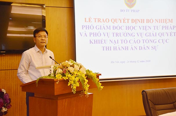 Khẳng định Kỳ thi tuyển chức danh lãnh đạo, quản lý cấp Vụ của Bộ Tư pháp năm 2018 vừa qua với quy trình, thủ tục rõ ràng, khách quan, công khai, minh bạch, Ban Cán sự Bộ Tư pháp đã tuyển chọn được các cán bộ đủ đức, đủ tài giữ các vị trí quan trọng trong các đơn vị thuộc Bộ, Bộ trưởng Lê Thành Long cũng nhấn mạnh, trên cơ sở các Đề tài mà các đồng chí đã bảo vệ tại Kỳ thi tuyển sẽ tiếp tục phát triển và hiện thực hóa các ý tưởng đã đưa ra để giúp đơn vị của mình có bước phát triển mới và xử lý được các vấn đề đặt ra trong thực tiễn. Bộ trưởng Lê Thành Long cũng đề nghị lãnh đạo hai đơn vị và các đơn vị thuộc bộ tiếp tục hỗ trợ, phối hợp chặt chẽ để các đồng chí hoàn thành tốt nhiệm vụ trong cương vị công tác mới.