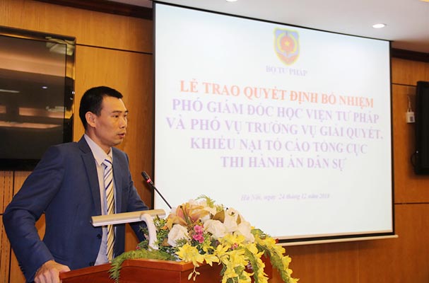 Xúc động chia sẻ về kết quả đạt được trong Kỳ thi tuyển vừa qua, đồng chí Trương Thế Côn cũng thay mặt cho hai đồng chí được bổ nhiệm lần này cảm ơn sự quan tâm, hỗ trợ của Lãnh đạo Bộ Tư pháp và các đơn vị thuộc Bộ. Đồng chí cam kết tiếp thu đầy đủ ý kiến của Lãnh đạo Bộ; trên cương vị công tác mới sẽ tiếp tục nghiên cứu, học tập, nỗ lực phấn đấu và hiện thực hóa Đề án đã bảo vệ tại kỳ thi trong tình hình mới.