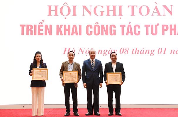 Cờ thi đua của Chính phủ được trao cho 5 tập thể: Vụ Tổ chức cán bộ, Vụ Các vấn đề chung về xây dựng pháp luật, Viện Khoa học pháp lý, Cục Hộ tịch, quốc tịch, chứng thực, Thanh tra Bộ.
