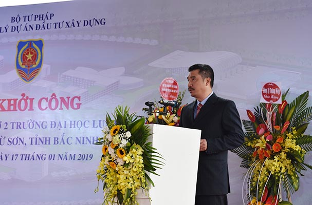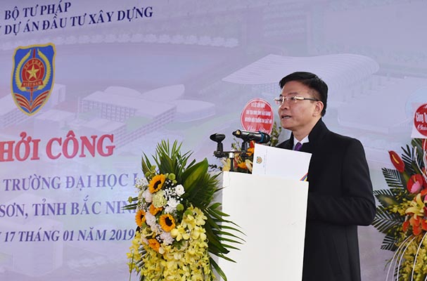 Phát biểu tại buổi lễ, Bộ trưởng Bộ Tư pháp Lê Thành Long đã gửi lời cảm ơn chân thành, sâu sắc tới lãnh đạo Bộ Kế hoạch đầu tư, Bộ Tài chính đã quan tâm, phối hợp với Bộ Tư pháp thực hiện thủ tục đầu tư Dự án; cám ơn Ban Thường vụ Tỉnh ủy, Thường trực HĐND, UBND tỉnh và các Sở, ban ngành đoàn thể và các cấp chính quyền trên địa bàn tỉnh Bắc Ninh, đặc biệt là các cư dân vùng Dự án đã quan tâm, giúp đỡ, thực hiện tốt công tác giải phóng mặt bằng để có thể triển khai dự án.