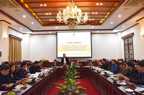 Thứ trưởng đề nghị trong năm 2019, Vụ Các vấn đề chung về xây dựng pháp luật cần tập trung làm tốt vai trò thường trực Ban Soạn thảo, Tổ Biên tập Luật sửa đổi, bổ sung một số điều của Luật ban hành văn bản quy phạm pháp luật để tháo gỡ các vướng mắc trong thực tiễn; chú trọng hướng dẫn chuyên môn, nghiệp vụ pháp chế cho các bộ, ngành, địa phương. Về công tác thẩm định, cần tham mưu để tăng cường hơn nữa trách nhiệm của các Bộ, ngành khi tham gia vào hội đồng thẩm định; hướng dẫn cách thức thẩm định sâu một số nội dung quan trọng, lưu ý đánh giá sự cần thiết, chi phí tuân thủ thủ tục hành chính trong quá trình thẩm định. Tăng cường năng lực cho đội ngũ cán bộ pháp chế; chuẩn bị thật tốt cho Đại hội nhiệm kỳ của Câu lạc bộ Pháp chế doanh nghiệp trong năm 2019, từ đó kiện toàn tổ chức để Câu lạc bộ hoạt động hiệu quả, là diễn đàn cho các doanh nghiệp đồng thời là kênh để tiếp nhận thông tin, tham mưu xây dựng chính sách liên quan đến doanh nghiệp...