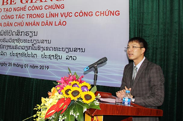 Chiều 25/01, Học viện Tư pháp Việt Nam đã trang trọng tổ chức Lễ bế giảng lớp đào tạo nghề công chứng cho cán bộ, giảng viên nước CHDCND Lào. Đây là khóa đào tạo thứ hai được tổ chức trong khuôn khổ Dự án hỗ trợ Học viện Tư pháp quốc gia Lào do Chính phủ nước CHXHCN Việt Nam tài trợ.