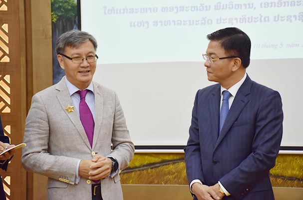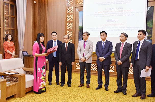 Sáng 10/5, Bộ trưởng Bộ Tư pháp Việt Nam Lê Thành Long đã trao Kỷ niệm chương “Vì sự nghiệp Tư pháp” cho ngài Thongsavanh Phomvihane, Đại sứ đặc mệnh toàn quyền nước CHDCND Lào tại Việt Nam.