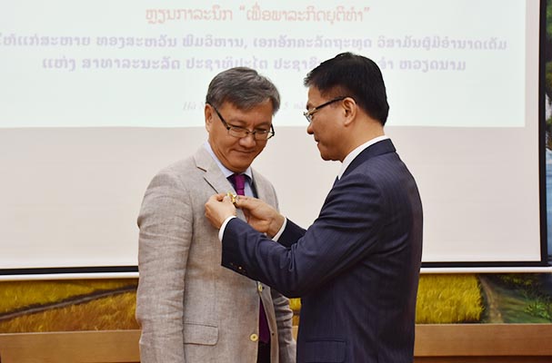 Đây là hình thức khen thưởng cao nhất thuộc thẩm quyền của Bộ trưởng Bộ Tư pháp dành cho các tổ chức, cá nhân nước ngoài. Kỷ niệm chương này là sự ghi nhận những đóng góp tích cực và hiệu quả của Đại sứ cho quan hệ hợp tác quốc tế về pháp luật và tư pháp vì sự phát triển ngành tư pháp Việt Nam; đồng thời cũng là sự ghi nhận những đóng góp quý báu của các cán bộ, nhân viên Đại sứ quán nước CHDCND Lào tại Việt Nam trong việc thúc đẩy quan hệ hợp tác pháp luật và tư pháp giữa Bộ Tư pháp hai nước nói riêng, giữa Việt Nam và Lào nói chung trong những năm vừa qua.