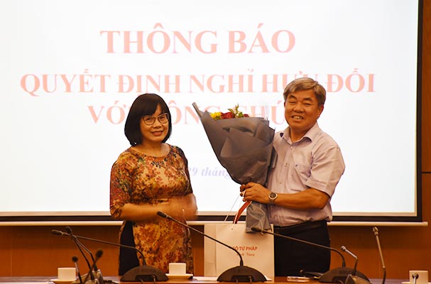 Chiều 29/5, thay mặt Lãnh đạo Bộ Tư pháp, Thứ trưởng Đặng Hoàng Oanh đã trao Quyết định nghỉ hưu cho đồng chí Nguyễn Văn Tường - Vụ trưởng Vụ Nghiệp vụ 2 và đồng chí Hà Huy Lục - Phó Vụ trưởng Vụ Giải quyết khiếu nại, tố cáo, Tổng cục Thi hành án dân sự (THADS). Lãnh đạo Tổng cục THADS cùng đại diện lãnh đạo một số đơn vị thuộc Bộ, đại diện Đảng, Đoàn thể và các tổ chức chính trị - xã hội đã đến dự buổi trao quyết định.