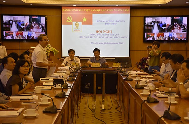 Chiều 6/6, Ban Cán sự Đảng phối hợp với Đảng ủy Bộ Tư pháp đã tổ chức Hội nghị thông báo nhanh kết quả Hội nghị lần thứ 10 Ban Chấp hành Trung ương Đảng khóa XII. Bí thư Ban Cán sự Đảng, Bộ trưởng Bộ Tư pháp Lê Thành Long chủ trì và trực tiếp thông báo.