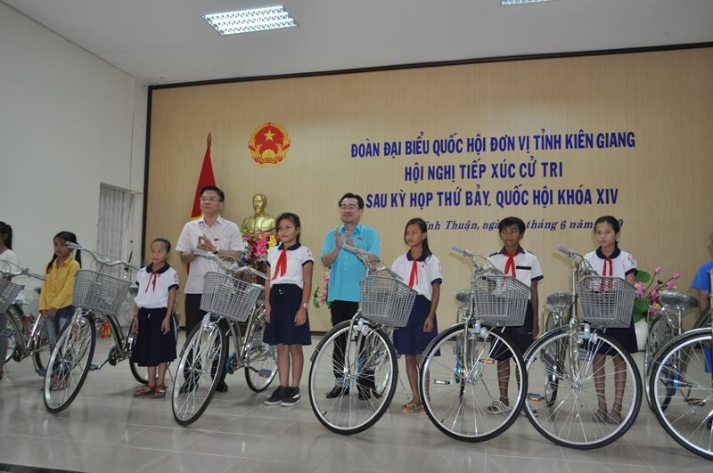 Qua buổi tiếp xúc cử tri, cử tri rất đồng tình những vấn đề mà Đoàn ĐBQH giải trình, trả lời. Dịp này, Bộ trưởng Bộ Tư pháp cùng Đoàn ĐBQH tỉnh Kiên Giang đơn vị số 2 đã trao 01 cây cầu giao thông nông thôn và 13 phần quà cho các gia đình có hoàn cảnh khó khăn, gia đình chính sách và 10 chiếc xe đạp cho học sinh trên địa bàn huyện Vĩnh Thuận (Kiên Giang).