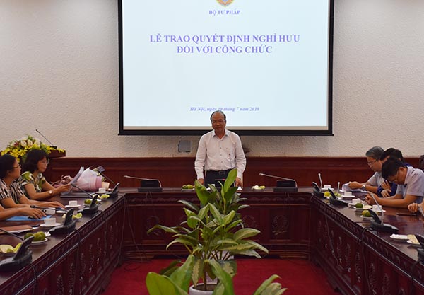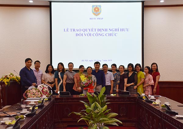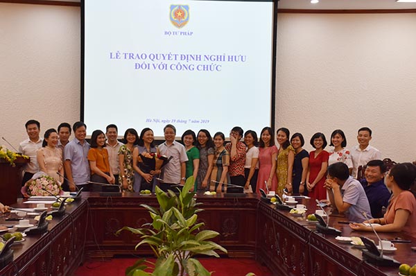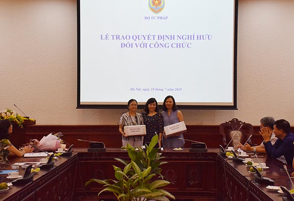 Ngày 19/7, thay mặt Lãnh đạo Bộ, Thứ trưởng Phan Chí Hiếu đã trao Quyết định nghỉ hưu cho đồng chí Đặng Thị Bích Hằng, Chuyên viên Vụ Tổ chức cán bộ và đồng chí Đinh Thị Lệ Thu, Chuyên viên Vụ Pháp luật dân sự kinh tế.