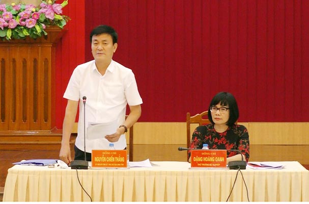 Làm việc với đoàn có đồng chí Nguyễn Chiến Thắng, Ủy viên Ban Thường vụ Tỉnh ủy, Phó Chủ tịch UBND tỉnh; Đại diện Lãnh đạo các cơ quan: Ban Nội chính Tỉnh ủy, Ủy ban Mặt trận Tổ quốc Việt Nam tỉnh, Viện Kiểm sát nhân dân tỉnh, Văn phòng Đoàn ĐBQH, HĐND và UBND tỉnh, Sở Tài chính, Sở Nội vụ, Thanh tra tỉnh, Công an tỉnh; Lãnh đạo Sở Tư pháp; Đại diện Lãnh đạo UBND và Trưởng phòng Tư pháp các huyện: Trấn Yên, Yên Bình, thành phố Yên Bái.