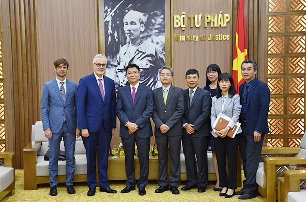 Bộ trưởng cũng đặc biệt quan tâm đến hợp tác giữa hai Bên về lĩnh vực đào tạo, bồi dưỡng sinh viên chất lượng cao cũng như đào tạo, bồi dưỡng các chức danh tư pháp tại Đại học Luật Hà Nội và Học viện Tư pháp và tin tưởng rằng đây là lĩnh vực hợp tác mang tính lâu dài và bền vững.