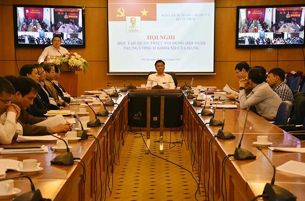 Ngày 28/11, Ban Cán sự Đảng, Đảng ủy Bộ Tư pháp tổ chức Hội nghị học tập, quán triệt nội dung Hội nghị Trung ương 11 khóa XII của Đảng theo hình thức trực tuyến tại điểm cầu trụ sở cơ quan Bộ và 5 trường Trung cấp Luật. Ủy viên Trung ương Đảng, Bí thư Ban Cán sự Đảng, Bộ trưởng Bộ Tư pháp Lê Thành Long chủ trì và truyền đạt một số nội dung liên quan.