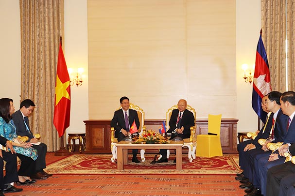 Trước giờ khai mạc Hội nghị Tư pháp các tỉnh có chung đường biên giới Việt Nam- Campuchia lần thứ 2, Bộ trưởng Lê Thành Long đã gặp xã giao Ngài Ăng Vong Vathana, Bộ trưởng Tư pháp Campuchia.