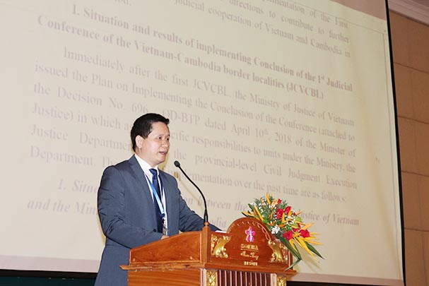 Thực hiện Kết luận Hội nghị tư pháp các tỉnh có chung đường biên giới Việt Nam – Campuchia lần thứ nhất được tổ chức tại tỉnh Tây Ninh, Việt Nam vào tháng 8/2017, trong 02 năm qua, Bộ Tư pháp và các địa phương của Việt Nam ở khu vực giáp biên giới với Cam-pu-chia đã có nhiều nỗ lực trong việc hướng dẫn, tổ chức triển khai công tác phổ biến, giáo dục pháp luật, trợ giúp pháp lý, hòa giải ở cơ sở cho người dân vùng biên, trong đó có người dân Cam-pu-chia. Bên cạnh những kết quả tích cực, quan hệ hợp tác pháp luật và tư pháp và sự phối hợp giữa Bộ, Ngành Tư pháp của hai nước trong việc triển khai thực hiện nhiệm vụ vẫn còn một số tồn tại, hạn chế, chưa tương xứng với nhu cầu, tiềm năng của hai Bên và quan hệ hợp tác hữu nghị giữa hai nước Việt Nam – Campuchia.