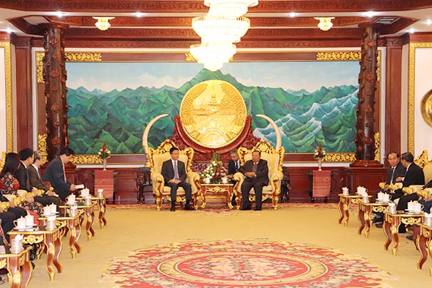 Chuyển lời thăm hỏi đến Tổng Bí Thư, Chủ tịch nước Nguyễn Phú Trọng và các đồng chí lãnh đạo Đảng, Nhà nước Việt Nam, đồng chí Tổng Bí thư, Chủ tịch nước CHDCND Lào khẳng định quan hệ Việt Lào là quan hệ đặc biệt có một không hai trên thế giới; hai dân tộc đã “sống chết có nhau” suốt chiều dài lịch sử từ khi Đảng cộng sản Đông Dương ra đời (1929); các Bộ, ngành của hai bên có trách nhiệm vun đắp cho tình hữu nghị anh em ngày càng bền chặt, không gì có thể lay chuyển được. Tổng Bí thư, Chủ tịch nước cũng vui mừng vì hai Bộ đã có những hợp tác trên nhiều lĩnh vực từ 37 năm qua, đạt nhiều kết quả tốt đẹp trong hợp tác về pháp luật và tư pháp, đặc biệt là hỗ trợ Lào trong công tác xây dựng pháp luật, đào tạo nguồn nhân lực cho cán bộ Tư pháp cũng như các chức danh tư pháp của Lào.