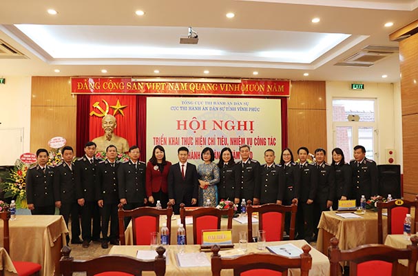 Sáng 12/12, Cục Thi hành án dân sự (THADS) tỉnh Vĩnh Phúc đã tổ chức Hội nghị Triển khai thực hiện chỉ tiêu, nhiệm vụ công tác THADS năm 2020. Tham dự Hội nghị có Thứ trưởng Bộ Tư pháp Đặng Hoàng Oanh, Phó Tổng cục trưởng Tổng cục THADS Trần Thị Phương Hoa, Phó Chủ tịch Thường trực HĐND tỉnh - Ủy viên BTV Tỉnh ủy Nguyễn Ngọc Bình, Trưởng Ban Nội chính - Ủy viên BTV Tỉnh ủy Hà Quang Tiến, Phó Chủ tịch UBND tỉnh, Trưởng BCĐ THADS – Tỉnh ủy viên Vũ Chí Giang, Bí thư Đảng ủy khối các cơ quan – Tỉnh ủy viên Nguyễn Thanh Tùng.