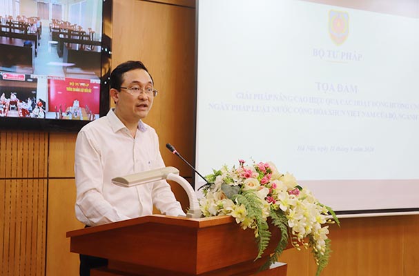 "Bộ Tư pháp mong đợi việc hưởng ứng Ngày Pháp luật Việt Nam chính là sự hun đúc, tạo dựng giá trị xã hội của người làm công tác tư pháp, pháp luật, có như vậy mới tạo được chiều sâu, sự lan tỏa", Thứ trưởng nhấn mạnh.