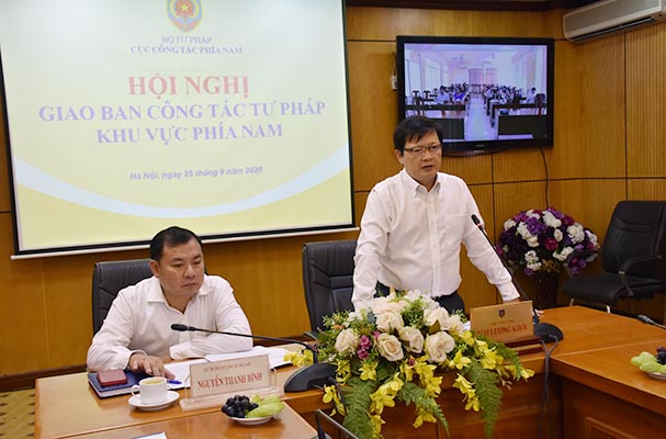 Báo cáo công tác tư pháp khu vực phía Nam, đồng chí Nguyễn Thanh Bình, Cục trưởng Cục Công tác phía Nam cho biết, công tác tư pháp tại các địa phương trong khu vực phía Nam trong 9 tháng đầu năm 2020 đã bám sát 9 nhóm nhiệm vụ trọng tâm, triển khai cơ bản toàn diện, có trọng tâm, trọng điểm các nhiệm vụ được giao theo kết luận của Phó Thủ tướng Thường trực Chính phủ Trương Hòa Bình và Thông báo kết luận của Bộ trưởng Lê Thành Long tại Hội nghị toàn quốc triển khai công tác tư pháp năm 2020. Các Sở Tư pháp trong khu vực tiếp tục nhận được sự quan tâm chỉ đạo kịp thời của cấp ủy và chính quyền địa phương. Các công tác như văn bản quy phạm pháp luật, quản lý xử lý vi phạm hành chính, phổ biến giáo dục pháp luật, quản lý nhà nước về hộ tịch, lý lịch tư pháp, bổ trợ tư pháp tại các địa phương tiếp tục có những chuyển biến tích cực, giảm tình trạng trễ hạn...