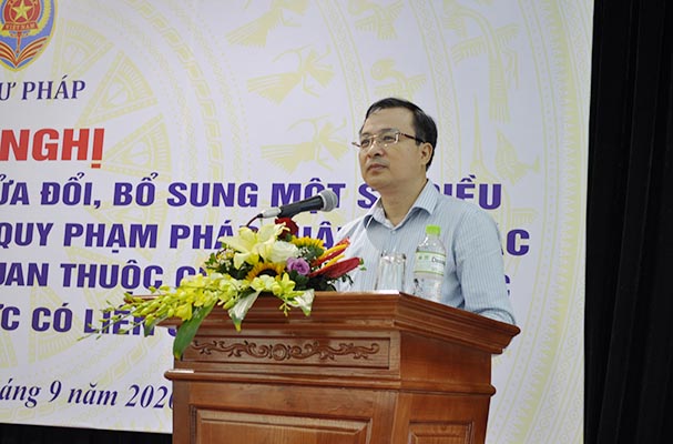 Tại Hội nghị, Vụ trưởng Nguyễn Hồng Tuyến đã giới thiệu và quán triệt những nội dung mới cơ bản của Luật sửa đổi, bổ sung một số điều của Luật Ban hành VBQPPL (Luật năm 2020). Theo đó, Luật năm 2020 sửa đổi, bổ sung 68 điều, trong đó sửa đổi, bổ sung 54 điều về nội dung và 14 điều về kỹ thuật của Luật năm 2015. Trong đó tập trung vào các nội dung cơ bản như: quy định cụ thể hơn cơ chế bảo đảm sự lãnh đạo của Đảng trong xây dựng, ban hành VBQPPL; bổ sung làm rõ quy định về phản biện xã hội của Mặt trận Tổ quốc Việt Nam trong quy trình xây dựng, ban hành VBQPPL.