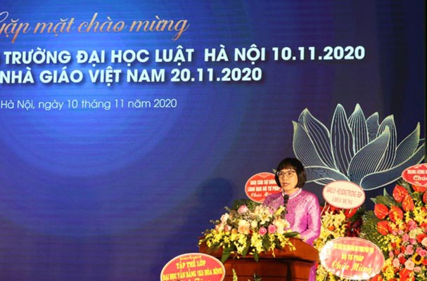 Phát biểu tại buổi lễ, Thứ trưởng Đặng Hoàng Oanh chúc mừng Đại học Luật Hà Nội nhân kỷ niệm 41 năm ngày truyền thống và chúc mừng các thầy giáo, cô giáo, các đồng chí cán bộ quản lý giáo dục nhân ngày Nhà giáo Việt Nam 20/11.