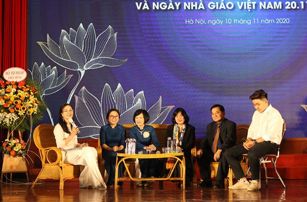 Nhân dịp này, các thầy, cô giáo và các em sinh viên của Trường đã gặp gỡ và lắng nghe những chia sẻ đến từ TS. NGƯT, Nguyễn Ngọc Hiến – Nguyên Thứ trưởng Bộ Tư pháp, nguyên Hiệu trưởng Trường Đại học Luật Hà Nội; ThS. Luật sư Đinh Ánh Tuyết – Trưởng văn phòng luật sư IDVN, Trọng tài viên Trung tâm trọng tài Quốc tế Việt Nam VIAC, Giảng viên thỉnh giảng…