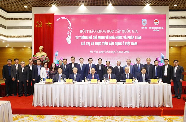 Sáng nay (30/11), Bộ Tư pháp phối hợp với Học viện Chính trị quốc gia Hồ Chí Minh tổ chức Hội thảo khoa học cấp quốc gia năm 2020 “Tư tưởng Hồ Chí Minh về Nhà nước và pháp luật: Giá trị và thực tiễn vận dụng ở Việt Nam” tại Trung tâm Hội nghị quốc tế, số 11, Lê Hồng Phong, Ba Đình, Hà Nội. Đồng chí Trương Hòa Bình, Ủy viên Bộ Chính trị, Phó Thủ tướng Thường trực Chính phủ chủ trì và phát biểu tổng kết Hội thảo.