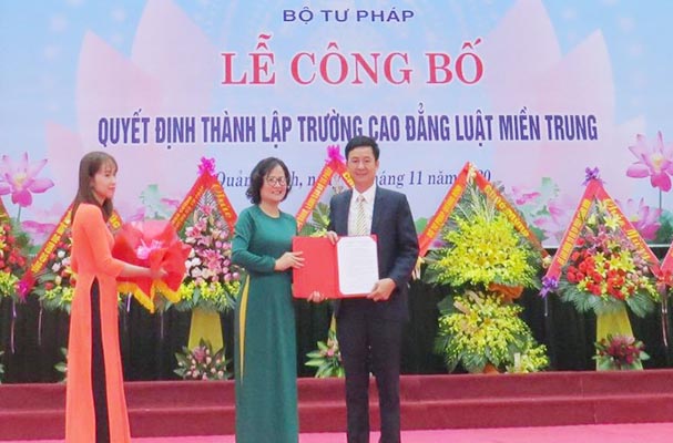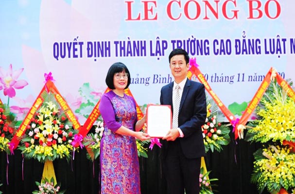 Đó là khẳng định của Thứ trưởng Bộ Tư pháp Đặng Hoàng Oanh tại buổi lễ Lễ công bố Quyết định thành lập Trường Cao đẳng Luật miền Trung (trên cơ sở nâng cấp Trường Trung cấp Luật Đồng Hới) của Bộ trưởng Bộ LĐ-TB&XH, diễn ra tại tỉnh Quảng Bình hôm nay (30/11).