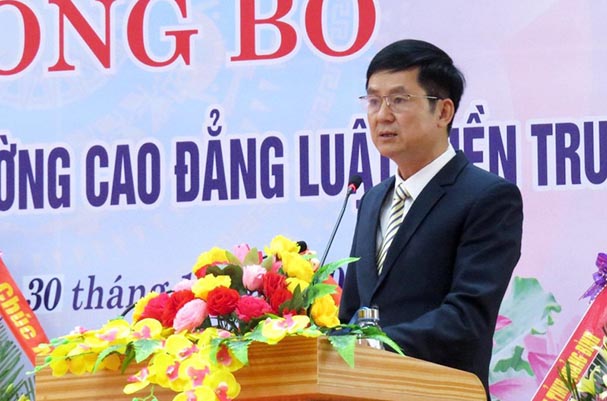Phát biểu chúc mừng Trường Cao đẳng Luật miền Trung, Bí thư Tỉnh ủy Quảng Bình Vũ Đại Thắng thay mặt lãnh đạo tỉnh gửi lời cảm ơn lãnh đạo Bộ Tư pháp đã chỉ đạo sát sao nhà trường thực hiện tốt các nhiệm vụ chính trị và chúc mừng Trường Cao đẳng Luật miền Trung.