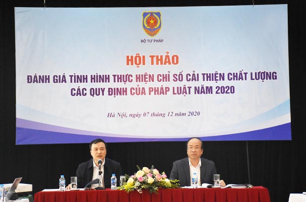 Thực hiện nhiệm vụ được giao tại Nghị quyết số 19-2017/NQ-CP ngày 06/02/2017 và các Nghị quyết của Chính phủ về tiếp tục thực hiện những nhiệm vụ, giải pháp chủ yếu cải thiện môi trường kinh doanh, nâng cao năng lực cạnh tranh quốc gia, chiều nay (07/12), Bộ Tư pháp đã tổ chức Hội thảo đánh giá tình hình thực hiện Chỉ số cải thiện chất lượng các quy định của pháp luật năm 2020. Thứ trưởng Bộ Tư pháp Phan Chí Hiếu đã đến dự và phát biểu chỉ đạo tại Hội thảo. Đồng chí Nguyễn Hồng Tuyến, Vụ trưởng Vụ các vấn đề chung về xây pháp luật đồng chủ trì Hội thảo.
