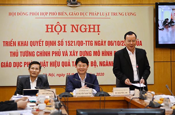 Ngày 15/12, Hội đồng Phối hợp Phổ biến giáo dục pháp luật Trung ương (Hội đồng) đã tổ chức Hội nghị trực tuyến triển khai Quyết định số 1521/QĐ-TTg ngày 6/10/2020 của Thủ tướng Chính phủ và xây dựng mô hình PBGDPL hiệu quả tại các Bộ, ngành, địa phương. Đồng chí Nguyễn Thanh Tịnh, Thứ trưởng Bộ Tư pháp, Phó Chủ tịch Thường trực HĐPHPBGDPLTW, đồng chí Cao Huy, Phó Chủ nhiệm Văn phòng Chính phủ, đồng chí Nguyễn Lam, Phó Trưởng Ban Dân vận Trung ương đồng chủ trì Hội nghị.