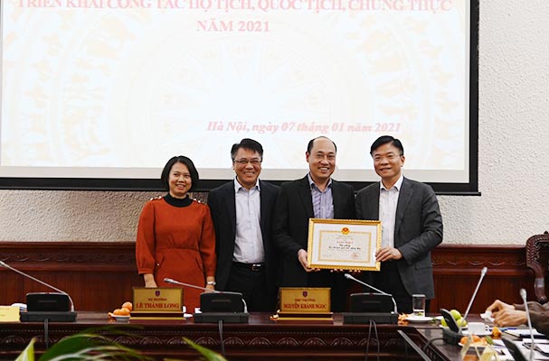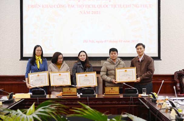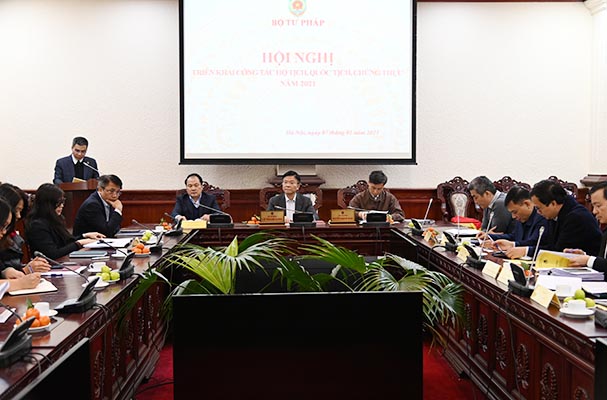 Theo báo cáo tại Hội nghị, trong năm 2020, Cục Hộ tịch, Quốc tịch, Chứng thực đã phối hợp với Cục Công nghệ thông tin triển khai thực hiện Đề án Cơ sở dữ liệu hộ tịch điện tử toàn quốc, mở rộng phạm vi áp dụng phần mềm. Tính đến 31/12/2020, trên toàn hệ thống đã có hơn 14.800 công chức làm công tác hộ tịch tại gần 11.000 UBND cấp xã, 712 Phòng Tư pháp cấp huyện và 63 Sở Tư pháp tham gia tác nghiệp hàng ngày. Trong giai đoạn 2016-2020, các cơ quan đăng ký hộ tịch đã thực hiện đăng ký khai sinh gồm cả đăng ký mới, đăng ký quá hạn và đăng ký lại cho gần 15,2 triệu trường hợp, đăng ký khai tử cho hơn 2,8 triệu trường hợp, đăng ký kết hôn cho gần 3,7 triệu cặp. Đặc biệt, thực hiện nhiệm vụ kết nối, cấp số định danh cá nhân cho trẻ em khi đăng ký khai sinh khoảng 4,9 triệu trường hợp; thực hiện liên thông đăng ký khai sinh – cấp thẻ bảo hiểm y tế cho 1,3 triệu trường hợp cho trẻ dưới 6 tuổi trên môi trường điện tử. Riêng trong năm 2020, cơ quan đăng ký hộ tịch trên toàn quốc đã thực hiện đăng ký khai sinh mới cho 1,9 triệu trường hợp, đăng ký khai sinh lại cho hơn 1triệu trường hợp, đăng ký khai tử cho gần 600 trường hợp, đăng ký kết hôn cho hơn 630 nghìn trường hợp, trong đó có 7.500 trường hợp kết hôn có yếu tố nước ngoài.