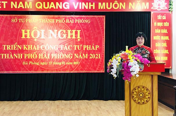 Phát biểu tại hội nghị, Thứ trưởng Bộ Tư pháp Đặng Hoàng Oanh nhấn mạnh, năm 2021 là năm diễn ra nhiều sự kiện hết sức quan trọng của đất nước như Đại hội đại biểu toàn quốc lần thứ XIII của Đảng, bầu cử đại biểu Quốc hội khoá XV và đại biểu Hội đồng nhân dân các cấp nhiệm kỳ 2021-2026 và cũng là năm đầu tiên thực hiện Chiến lược phát triển kinh tế - xã hội 10 năm 2021-2030, Kế hoạch phát triển kinh tế - xã hội 5 năm 2021-2025 với nhiều thời cơ và vận hội mới cho đất nước, cho Bộ, ngành Tư pháp cũng như đối với TP Hải Phòng.