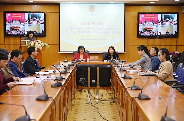 Năm 2021, các trường Cao đẳng Luật tiếp tục bám sát các nhiệm vụ trọng tâm trong Chương trình công tác năm 2020 của ngành Tư pháp và Kế hoạch của Trường đã được Lãnh đạo Bộ phê duyệt để triển khai thực hiện; tiếp tục kiện toàn cơ cấu tổ chức của Trường; đẩy mạnh công tác tuyển sinh; nâng cao chất lượng công tác đào tạo; tiếp tục triển khai biên soạn giáo trình, tài liệu phục vụ giảng dạy chương trình đào tạo trung cấp và cao đẳng…