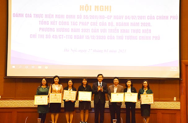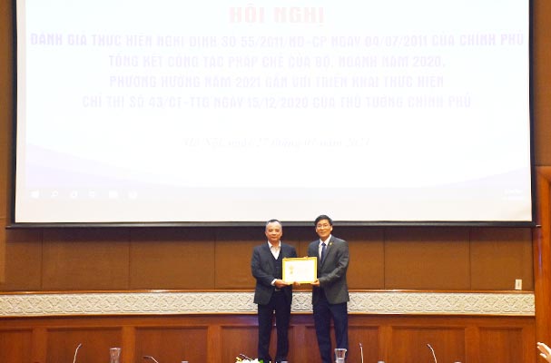 Nhân dịp này, Thứ trưởng Nguyễn Khánh Ngọc đã trao tặng Bằng khen của Bộ trưởng Bộ Tư pháp cho tổ chức pháp chế bộ, ngành và các cá nhân có thành tích xuất sắc trong giai đoạn 2016-2021 và trao tặng Kỷ niệm chương “Vì sự nghiệp Tư pháp”.