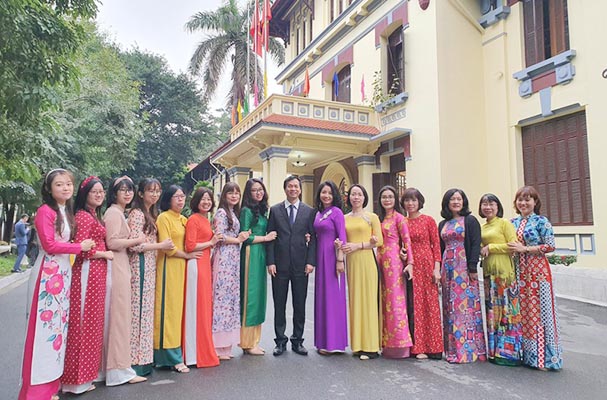 Những ngày này, khi đến các đơn vị thuộc Bộ, ai cũng có thể thấy hình ảnh chị em phụ nữ diện trang phục áo dài truyền thống Việt Nam thật đẹp mắt. Không những thế, những hình ảnh, khoảnh khắc các nữ cán bộ, công chức, viên chức mặc trang phục áo dài truyền thống đang làm việc hay tranh thủ chụp những lúc giải lao được lan tỏa khắp mạng xã hội.