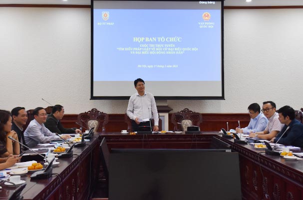 Phát biểu kết luận cuộc họp, Thứ trưởng Nguyễn Thanh Tịnh, Trưởng Ban Tổ chức cuộc thi đề nghị cần nghiên cứu kỹ lưỡng về thời gian, chương trình, nội dung, kịch bản, quy mô lễ phát động cuộc thi để tạo sức lan tỏa ý nghĩa của cuộc thi; đặc biệt cần lưu ý tới sự tham gia của các đoàn ĐBQH để tạo được tính kết nối với các địa phương. Ngoài ra, Thứ trưởng cũng đưa ra một số gợi ý điều chỉnh về thời gian tổ chức cuộc thi, đối tượng dự thi, cơ cấu giải thưởng đồng thời yêu cầu cần phát huy vai trò, trách nhiệm của Hội đồng PBGDPL Trung ương, các cơ quan báo chí, tăng cường phối hợp giữa các cơ quan, đơn vị để nâng cao hiệu quả về cuộc thi…