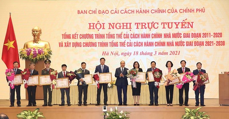 Phát biểu kết luận Hội nghị, Thủ tướng Chính phủ Nguyễn Xuân Phúc đã đặc biệt đánh giá cao, biểu dương vai trò của Bộ Nội vụ, Bộ Tư pháp, Bộ Tài chính, Bộ Thông tin và Truyền Thông, Văn phòng Chính phủ cùng với nhiều bộ, ngành, địa phương khác đã có nhiều nỗ lực, thành tích trong thực hiện nhiệm vụ cải cách hành chính của mình, đồng thời, đã tham mưu với Chính phủ, Thủ tướng Chính phủ, giúp các bộ, ngành, địa phương thực hiện tốt hơn nhiệm vụ cải cách hành chính thời gian qua. Thủ tướng Chính phủ cũng ghi nhận, đánh giá cao sự đồng hành của cộng đồng doanh nghiệp, nhất là trong việc thực hiện cải cách thủ tục hành chính, cắt giảm điều kiện kinh doanh, cải thiện môi trường đầu tư kinh doanh, hiện đại hóa hành chính. Đối với công tác cải cách hành chính giai đoạn 2021 - 2030 tới đây, Thủ tướng Chính phủ mong muốn, công tác cải cách hành chính phải tiếp tục làm cho nước ta hùng mạnh; các bộ, ngành, địa phương tiếp tục quán triệt chủ trương, đường lối của Đảng về đẩy mạnh cải cách hành chính, xây dựng và tổ chức thực hiện Chương trình cải cách hành chính nhà nước giai đoạn 2021 - 2030 một cách toàn diện, đồng bộ, có trọng tâm, trọng điểm, đi vào chiều sâu nhằm xây dựng nền hành chính dân chủ, chuyên nghiệp, nâng cao trách nhiệm giải trình, từng bước hiện đại phục vụ sự nghiệp công nghiệp hóa, hiện đại hóa đất nước, lấy người dân làm trung tâm, lấy sự hài lòng của người dân, doanh nghiệp làm thước đo đánh giá chất lượng hoạt động của bộ máy hành chính nhà nước.