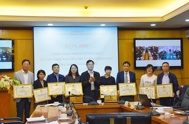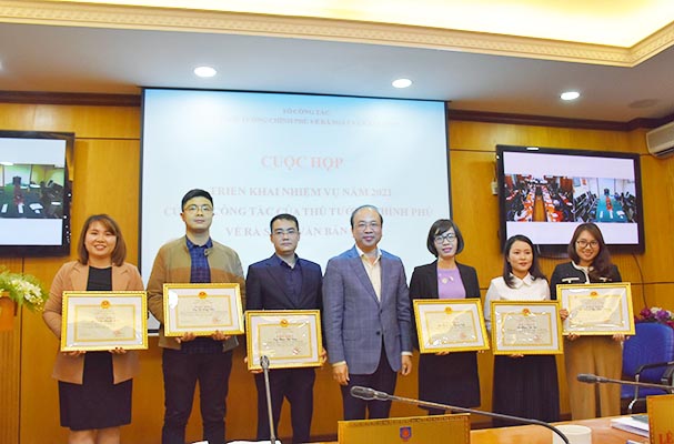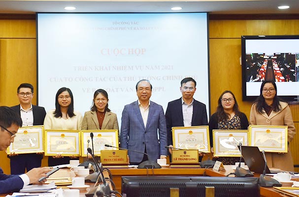 Cuộc họp cũng đã công bố Quyết định số 82/QĐ-BTP ngày 22/01/2021 của Bộ trưởng Bộ Tư pháp về việc tặng Bằng khen đối với các 09 tập thể, 14 cá nhân có thành tích xuất sắc trong việc thực hiện công tác rà soát văn bản QPPL theo Quyết định số 236/QĐ-TTg ngày 12/02/2020 của Thủ tướng Chính phủ.