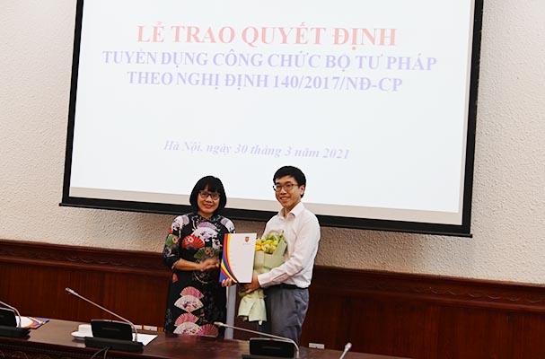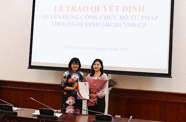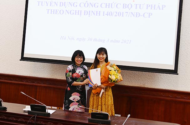 Theo đó, 03 công chức được tuyển dụng là những sinh viên tốt nghiệp xuất sắc từ các cơ sở đào tạo Luật trong nước sẽ về làm việc tại Vụ pháp luật hình sự - hành chính và Vụ pháp luật dân sự - kinh tế.
