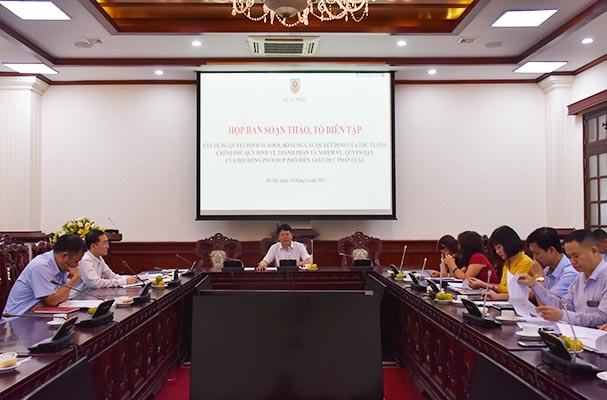 Chiều nay (19/4), Thứ trưởng Bộ Tư pháp Nguyễn Thanh Tịnh, Trưởng ban Soạn thảo đã chủ trì cuộc họp Ban soạn thảo, Tổ biên tập xây dựng dự thảo Quyết định sửa đổi, bổ sung các Quyết định của Thủ tướng Chính phủ quy định về thành phần và nhiệm vụ, quyền hạn của Hội đồng phối hợp phổ biến, giáo dục pháp luật.