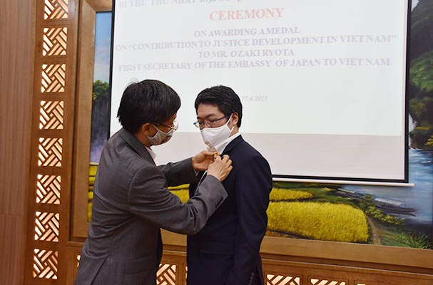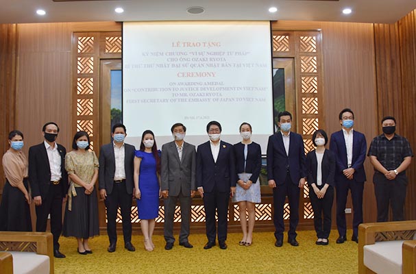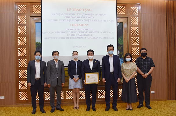 Chiều 17/3, tại trụ sở Bộ Tư pháp, Thứ trưởng Nguyễn Khánh Ngọc trao Kỷ niệm chương Vì sự nghiệp tư pháp cho ông Ozaki Ryota, Bí thư thứ nhất Đại sứ quán Nhật Bản tại Việt Nam để ghi nhận những đóng góp của ông cho sự nghiệp pháp luật và tư pháp trong thời gian qua.