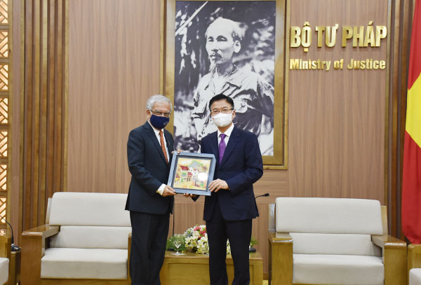 Qua đó, Bộ trưởng cũng ghi nhận và cảm ơn những hỗ trợ thiết thực, hiệu quả của các cơ quan của Liên Hợp quốc (đặc biệt là UNDP, UNICEF, UN Women, UNHCR, UNODC...) và cá nhân ông Kamal Malhotra dành cho Bộ Tư pháp và các cơ quan pháp luật, tư pháp của Việt Nam trong quá trình xây dựng, hoàn thiện pháp luật, tổ chức thi hành pháp luật và cải cách tư pháp thông qua 03 Dự án và 04 phi Dự án hợp tác.