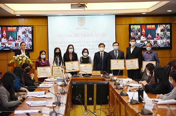 Tại Hội nghị, thay mặt Lãnh đạo Bộ Tư pháp, Thứ trưởng đã chúc mừng và biểu dương những tập thể, cá nhân điển hình tiên tiến đã được Bộ trưởng Bộ Tư pháp tặng bằng khen nhân dịp tổng kết 10 năm thi hành Luật và Công ước.