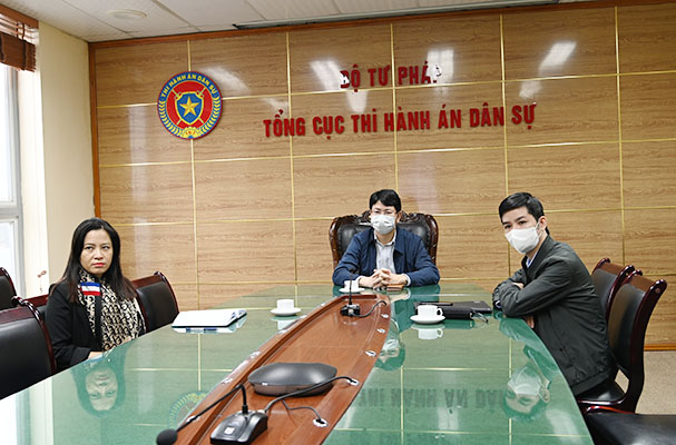 Tại điểm cầu Bộ Tư pháp có sự tham dự của Thứ trưởng Nguyễn Thanh Tịnh; Phó Cục trưởng Cục Công nghệ thông tin Tạ Thành Trung; Phó Viện trưởng Viện Khoa học pháp lý Chu Thị Hoa cùng đại diện 02 đơn vị.
