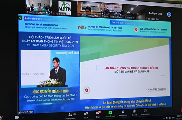 Sáng nay (25/11), Chương trình Hội thảo - triển lãm quốc tế Ngày An toàn thông tin Việt Nam 2021 lần thứ 14 được tổ chức trực tuyến, với điểm cầu chính tại Hà Nội do Cục An toàn thông tin (Bộ thông tin và truyền thông) phối hợp với Hiệp hội An toàn thông tin Việt Nam (VNISA). Đây là sự kiện lớn trong lĩnh vực an toàn thông tin (ATTT) mạng tiếp tục được Bộ Thông tin và Truyền thông (Bộ TT&TT) bảo trợ. Hội thảo có sự góp mặt của gần 1.000 khách tham dự phòng hội thảo online và 2.000 người theo dõi trực tiếp qua nền tảng mạng xã hội (trang facebook.com/vnisahn), với cả kênh tiếng Anh và tiếng Việt.